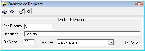 Para as despesas serem exibidas no movimento de despesas deverá ser cadastrado no “Cadastro de Despesas” e estar marcado como “Ativo”
